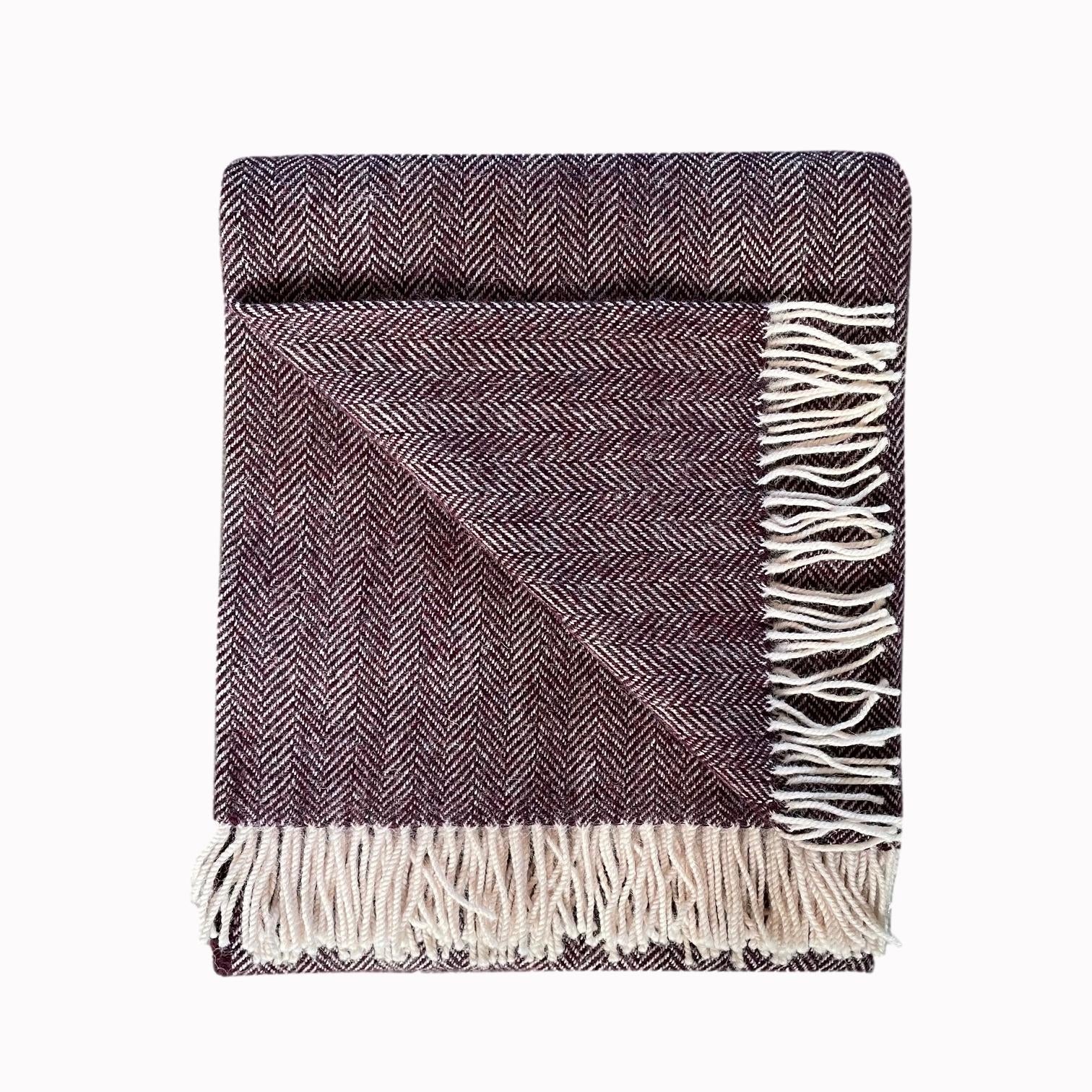 A classic herringbone blanket in pure wool, woven in Mulberry, an earthy hue that epitomizes the Donegal landscape. A thick, rustic style blanket perfect for a country living space.