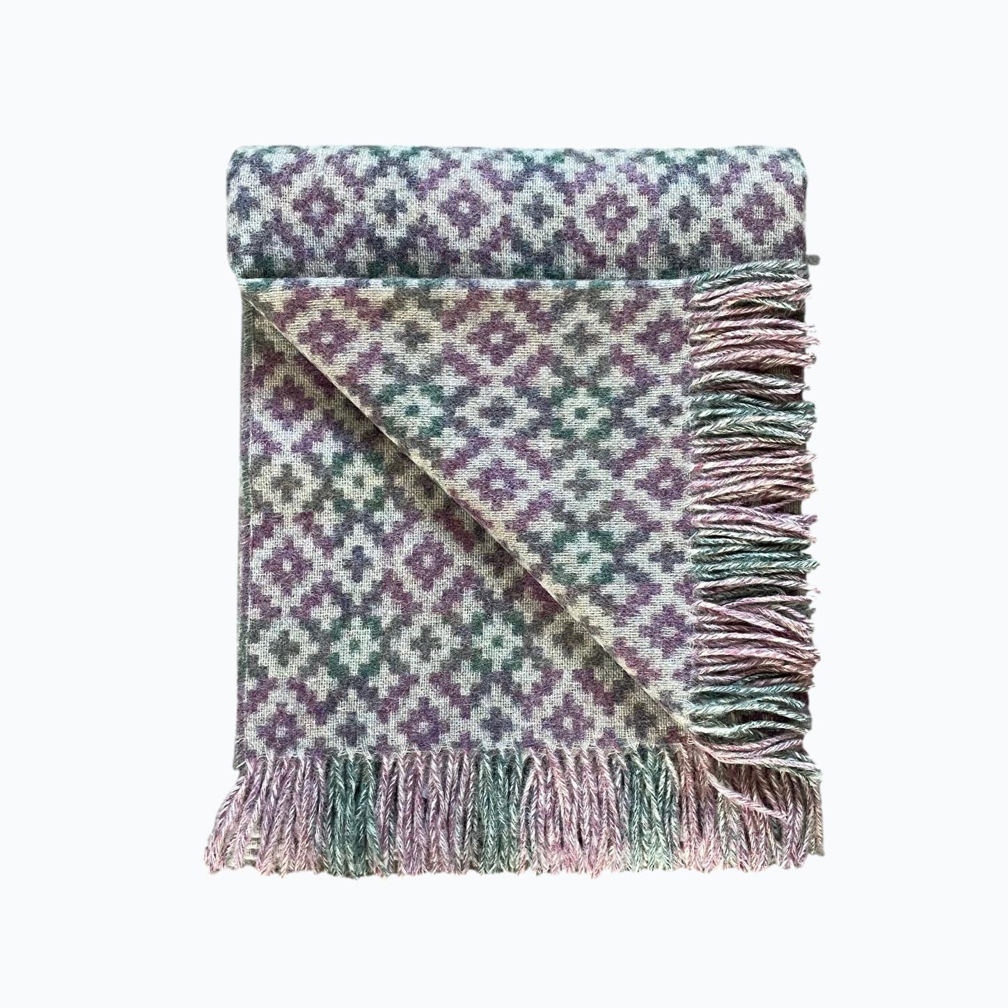 The Fretwork blanket with its patterned weave is perfectly at home in period and vintage homes. In Heather, a mixture of soft mauves and greens, its subtle colouring works beautifully against a complementary backdrop. Woven in Yorkshire from 100% pure new wool, the Fretwork blanket is beautifully soft, fine and durable with a multitude of uses.